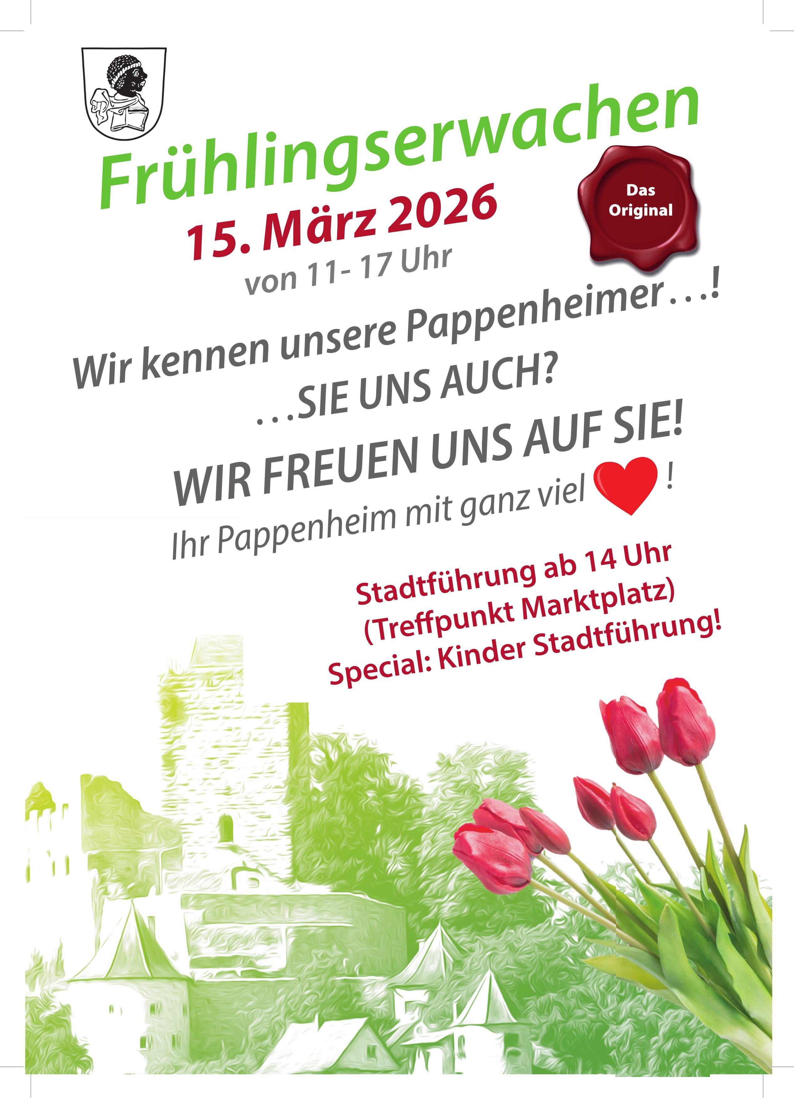 Am Sonntag, 15. März 2025, lädt die Stadt Pappenheim von 11.00 bis 17.00 Uhr zum Frühlingserwachen unter dem Motto „Wir kennen unsere Pappenheimer…! ….Sie uns auch?“ ein.